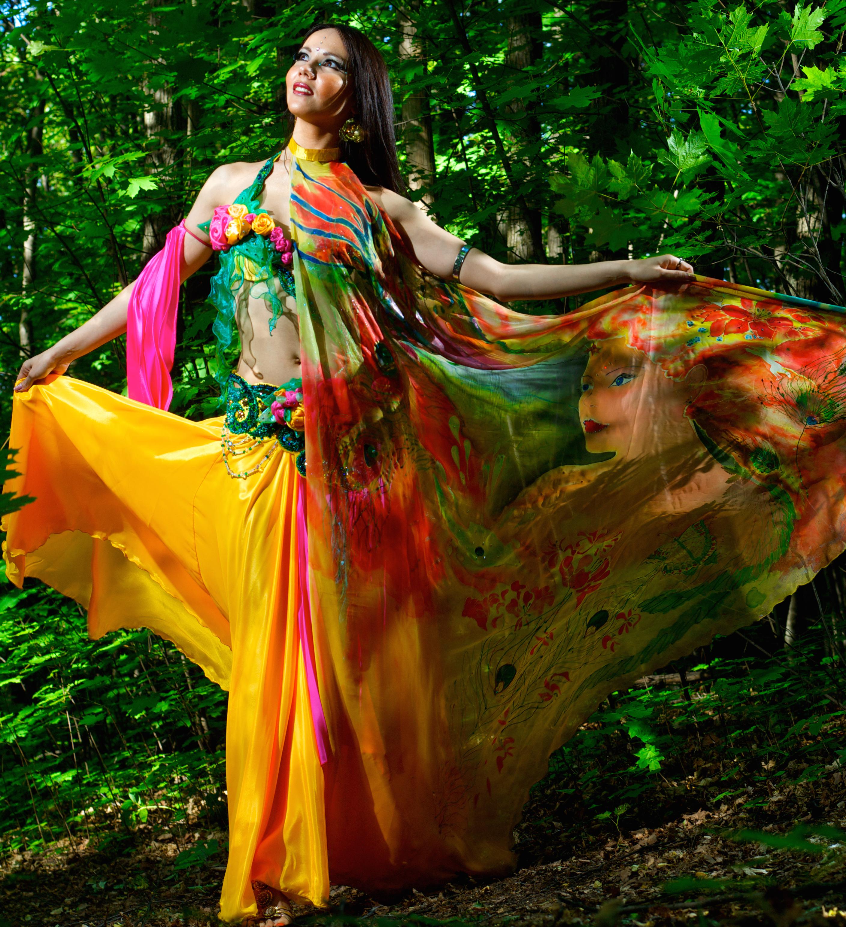 Работа в танце с различной атрибутикой (Платки, Крылья, Вейлы, Канделябр, Бубен, Веера, Перья, Табла, дарбука, Подносы, Вазы и другие)